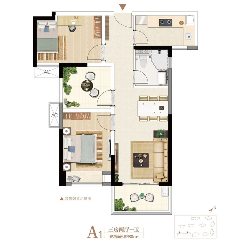 建筑面积:80㎡